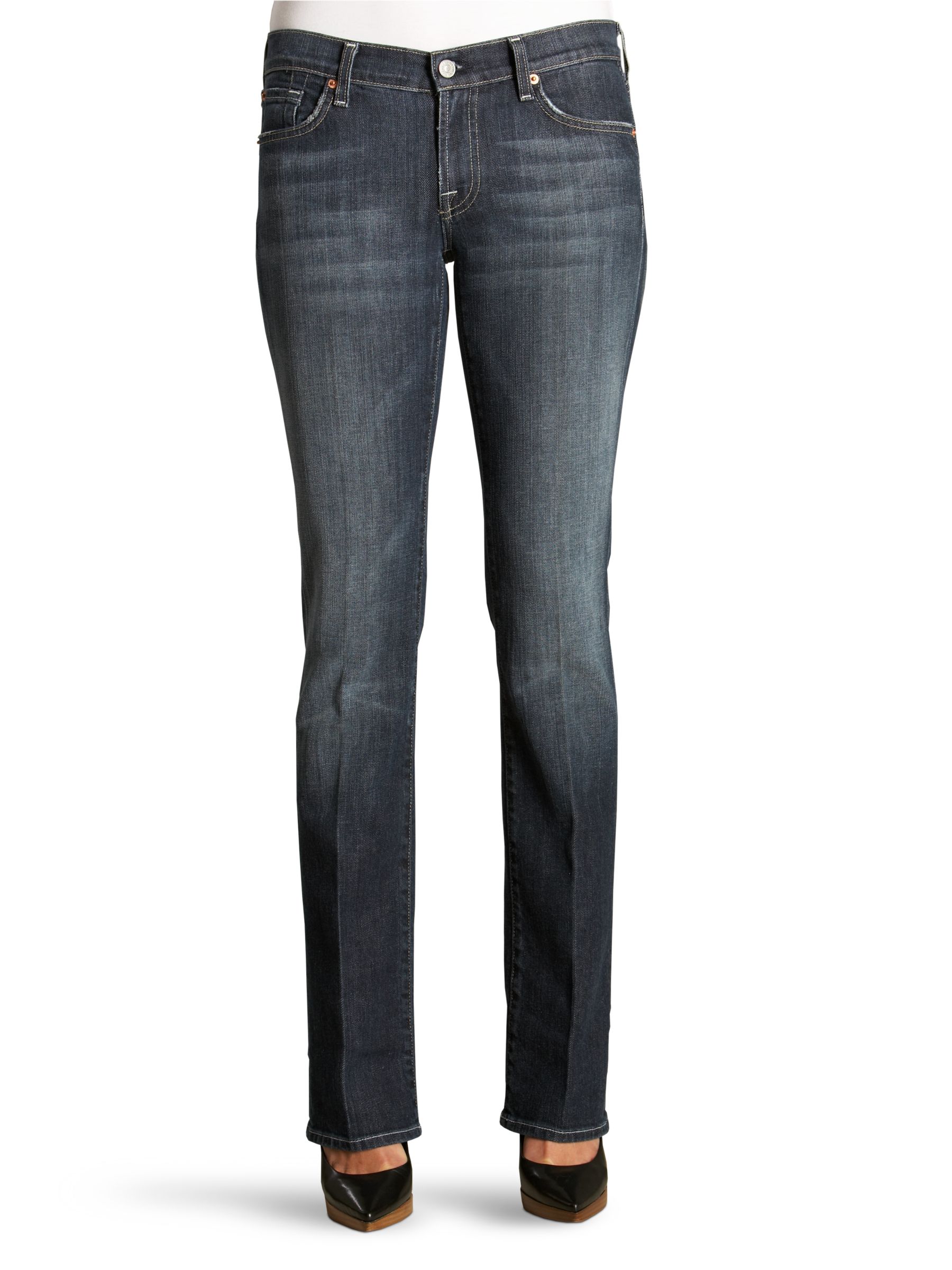 The Boot-Cut JeanBoot-Cut jeans are the most common pair of jeans. Boot-cut jeans make the most of your curves and their wider hem deflects attention away from ample waists, hips and thighs. They also disguise large calves and make the legs look leaner.This classic style is best for the fuller figure, particularly if it has clean lines with minimal detailing and embellishments, which add unnecessary bulk. 7 for all Mankind are best known for their boot cut jeans. For a more trendy boot-cut, try True Religions Joey's. The thick stitching on Joey's create more a defined curve on the legs and bottom.